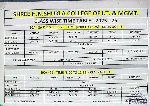 B.Sc. (I.T.) Time Table Semester - 2